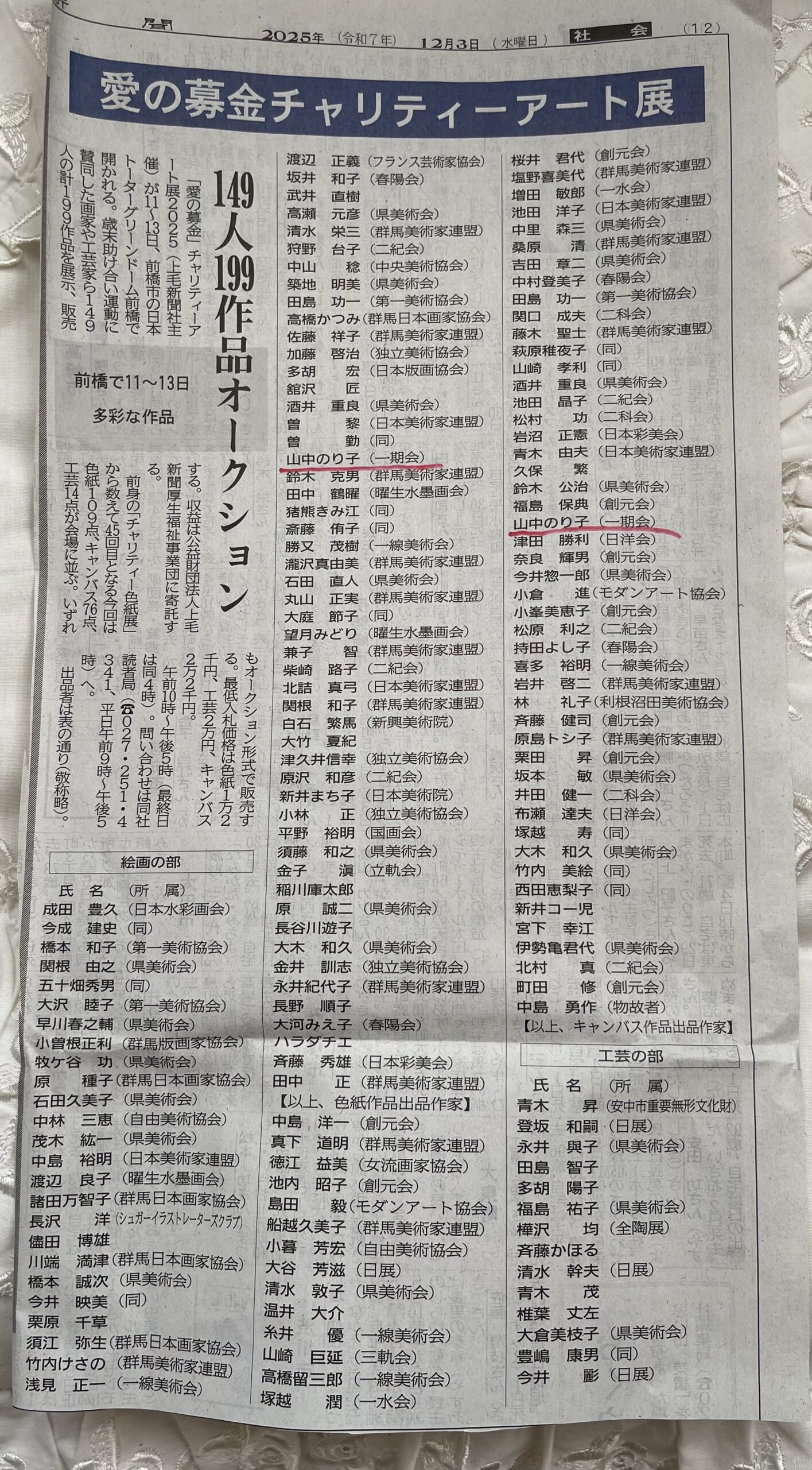 「愛の募金」チャリティーアート展2025へ出品します。